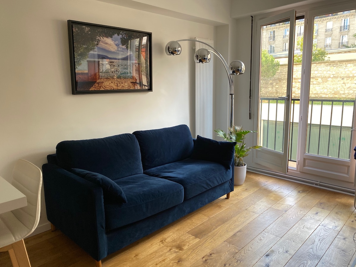 Potpuno renoviran studio od 28 m², u blizini Eiffelovog tornja i okruga Champs de Mars u 15. arondismanu Pariza. Idealno za parove, prijatelje ili poslovno putovanje Naći ćete: dnevnu sobu, čajnu kuhinju, trpezariju i kupatilo s tušem. Studio je opremljen mašinom za pranje i sušenje veša, mašinom za pranje suđa, Nespressom, brzim Wi-Fi mrežom i mnogim drugim sadržajima.
