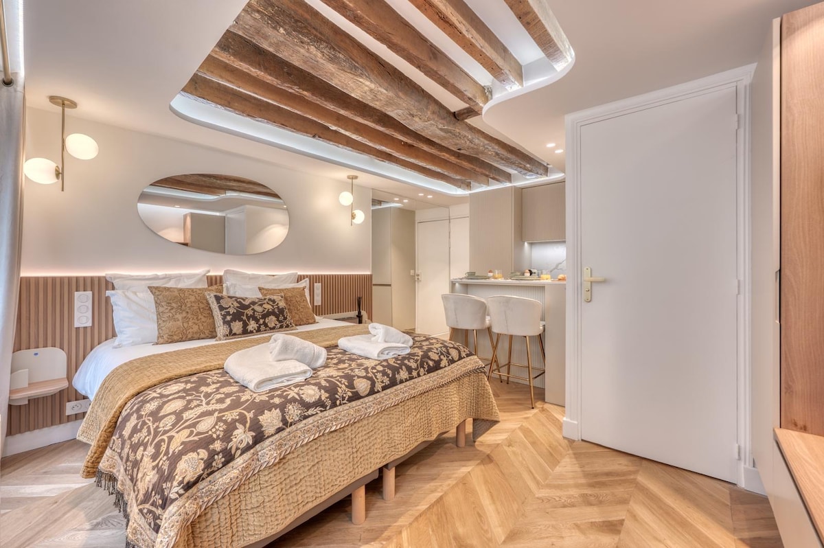 Pariški život u stanu ovog prekrasnog arhitekte s boemskim elegantnim akcentima koji se nalaze u srcu Pariza u historijskom okrugu Louvre. Dnevna razglednica, okrug Louvre nudi mnoge spektakularne mogućnosti za razgledanje, odlične restorane i uzbudljive zabavne sadržaje. Idealno za par koji se želi opustiti nakon dugog dana posjete Parizu u prekrasnom prostoru sa svim udobnostima doma!