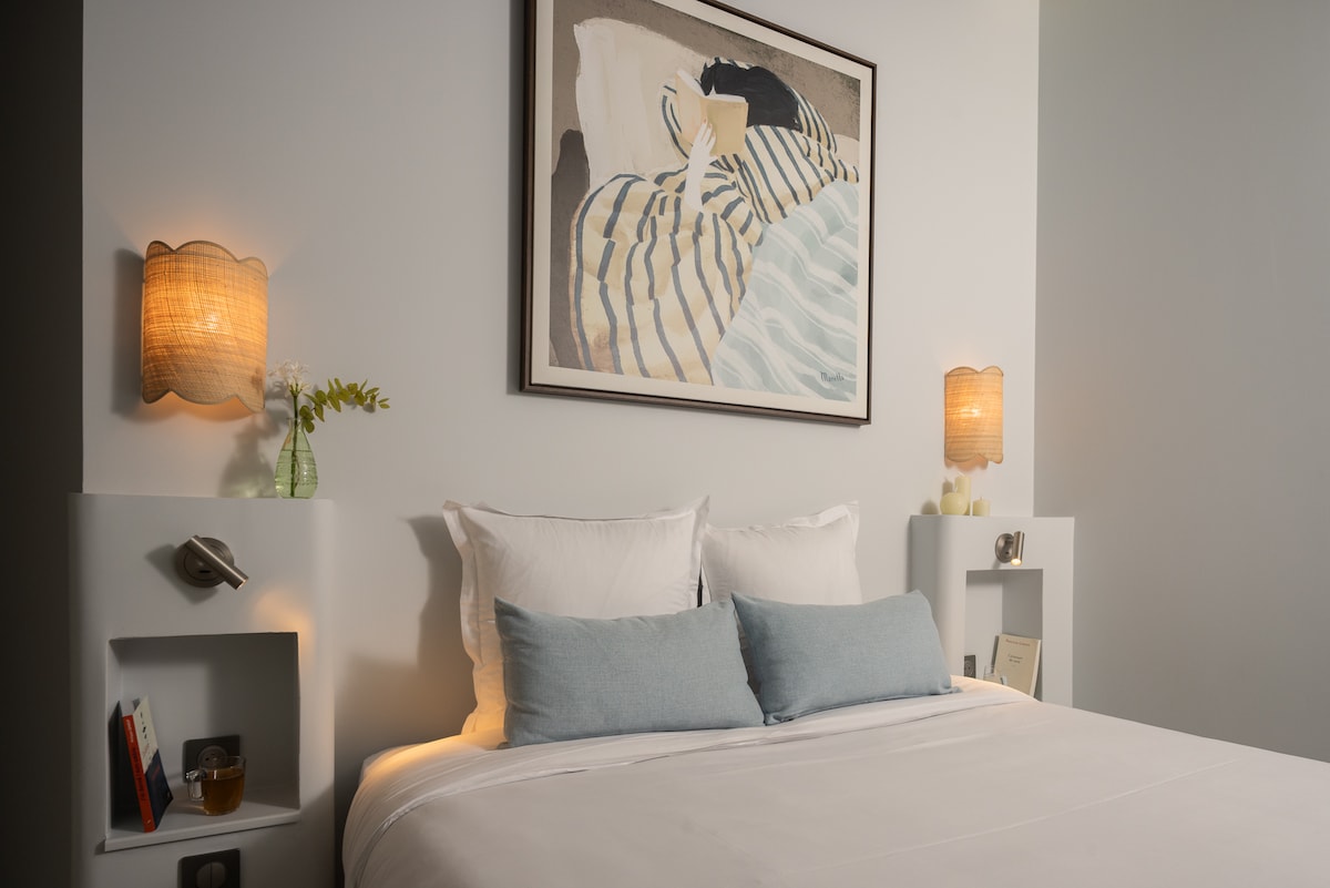 Moj stan na ostrvu Saint Louis smješten je uz romantične obale rijeke Sene. Otkrivanje Pariza iz ove legendarne i živahne četvrti oduševit će vaše putovanje dašak legende. Sa svojom nenadmašnom lokacijom u srcu Pariza, legendarne znamenitosti kao što su Notre-Dame i Louvre udaljene su samo nekoliko koraka. Metro je udaljen 2 minute hoda za jednostavnu vezu s živopisnim pulsom grada. Poznati francuski arhitekt je prožeo prostor bezvremenskom elegancijom francuskog Louis XV stila.
