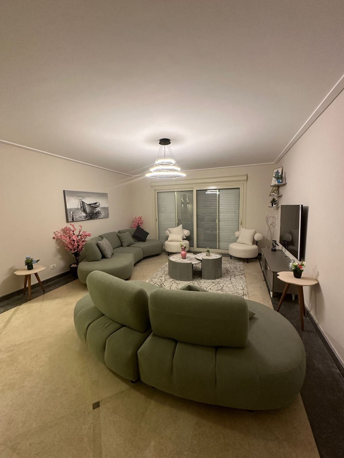 Welcome to our modern 3BR (320 sqm) apartment by West Somid Developments! On the lower ground floor, it's perfect for families, groups & professionals. Enjoy 5G Wi-Fi, 5 smart TVs, electric shutters & new furniture. 24/7 security, guest lobby, food delivery. Free weekly cleaning. Guests can also enjoy a shared rooftop lounge — great for movie nights, relaxing evenings & family time. Just minutes from Mall of Arabia & top Zayed spots! ما نقدر نستضيف أي ثنائي عربي غير متزوج في نفس الشقة.
