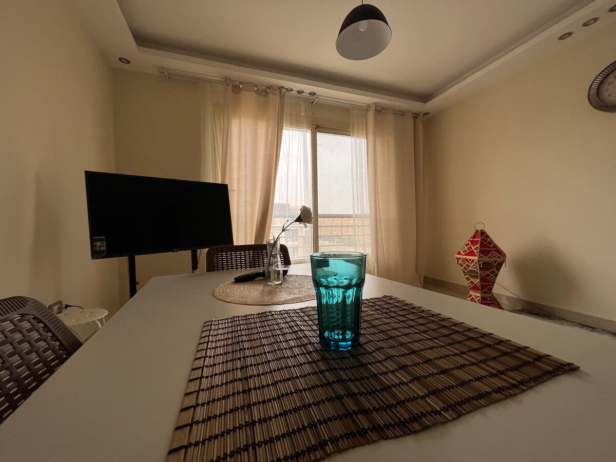 An economy option yet cozy, stylish, and hygenic, with two splits AC, well furnished apparment in “ Dream land” 6 october, wahat road, near Mall of Egypt, suitable for one person or couple,no sharing , the rental for entire place , consist of: one bedroom : bed Sizes: Width 160 cm - Depth 200 cm, convenient for two person suitable and comfort for sleeping , bath room and fully equipped kitchen . The Appartment is 20 mnts away from the pyramid and the “ grand museum “ with all facilities .