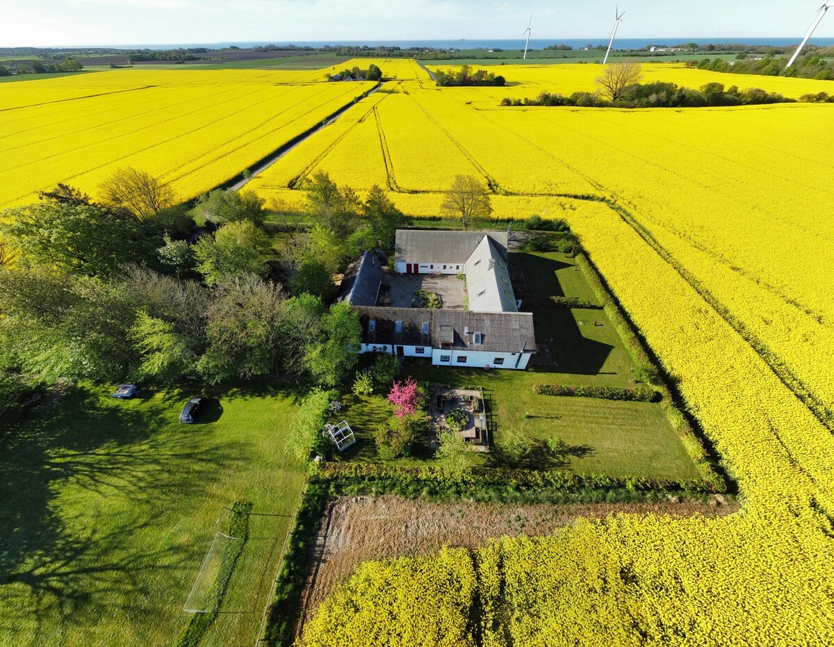Mala udobna gostinjska kuća površine 32 m2, smještena u vezi s prekrasnim starim objektom od 4 dužine, okruženom šumom, poljima i širokim pogledom na prirodu Bornholma. Gostinjska kuća je novouređena i sadrži dnevnu sobu s kaučem na razvlačenje, niše s krevetom na sprat, čajnu kuhinju i kupatilo s tuš kabinom i WC-om. Iz dnevne sobe se nalazi izlaz na terasu s pločicama s vrtnim namještajem i plinskim roštiljem.