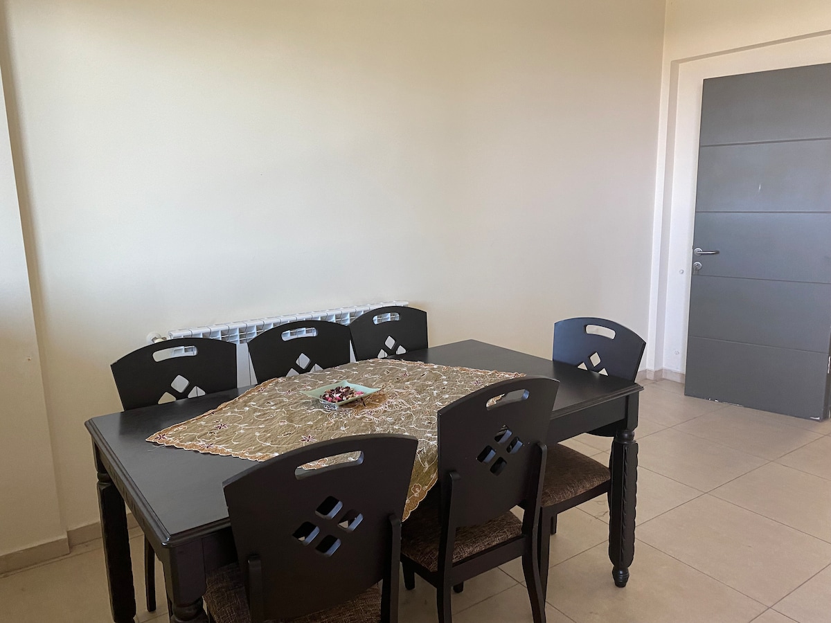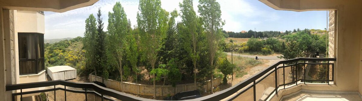 Welcome to our humble home, a fully furnished apartment, far above the hustle and bustle of the city but accessible to all essentials. Located in a lush green mountainous area with developed roads with a beautiful view of the surrounding forest, perfect for nature hiking. Enjoy the calm at home, play tennis, football, or basketball in the community courts, have a picnic, relax by the pool, or drive to Beirut for an outing with friends and family. All are easily accessible.
