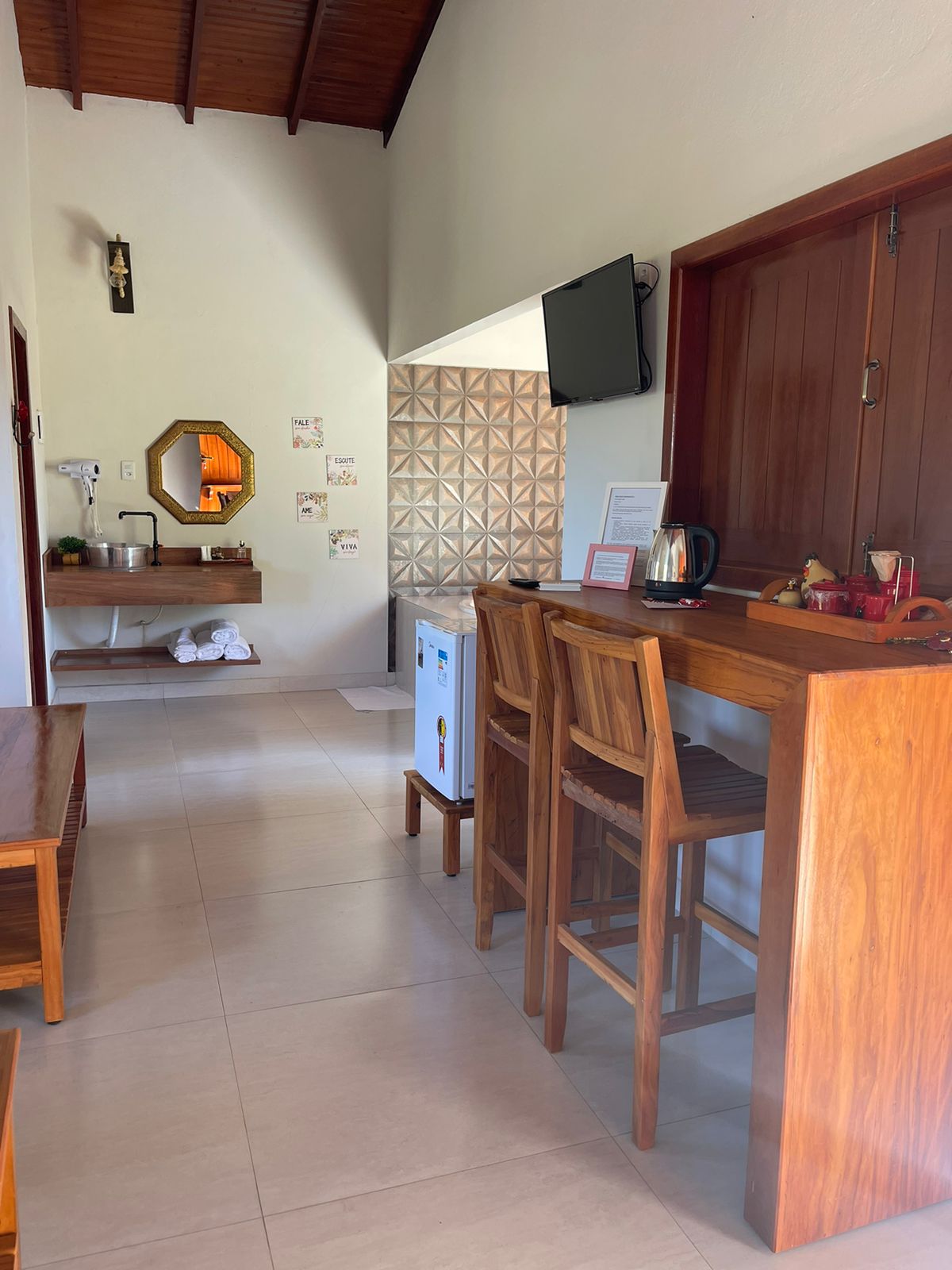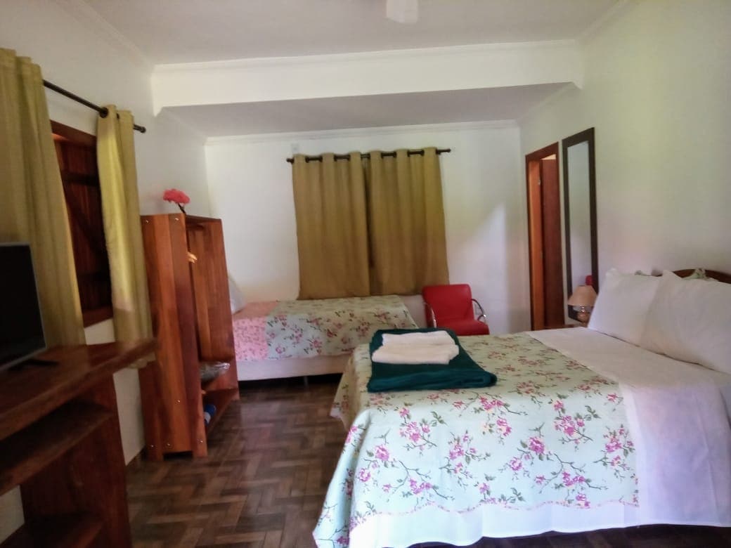 Pousada rústica, confortável, acolhedora e aconchegante, que oferece aos hóspedes-amigos, além da piscina aquecida ao ar livre, área de lazer, mesa de sinuca e amplo jardim com plantas ornamentais. O espaço gourmet, destinado à confraternização e eventos, churrasco, almoço ou jantar, deve ser reservado antecipadamente. Há tarifa adicional na reserva do espaço gourmet. Recepção familiar, atencioso, acomodação confortável, café da manhã com várias opções. 8 Suítes confortáveis