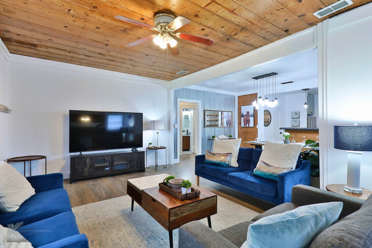 Dobro došli u Sunshine Chalet! Ovaj noviji smještaj u blizini Abilene's Soda Districta savršeno je uređen tako da bude vaš idealan dom daleko od doma. Bilo da posjećujete svog lokalnog studenta, prisustvujete vjenčanju na jednom od mnogih obližnjih mjesta ili uživate u odmoru za parove na pješačkoj udaljenosti od najboljih lokalnih popularnih mjesta - ne tražite dalje! Uživajte u nenadmašnom čistom, 3bd, 2,5ba, 1850 kvadratnih metara s Wi-Fi mrežom, 2 Roku televizora, privatnom dvorištu s ognjištem, Tesla punjenju i još mnogo toga!