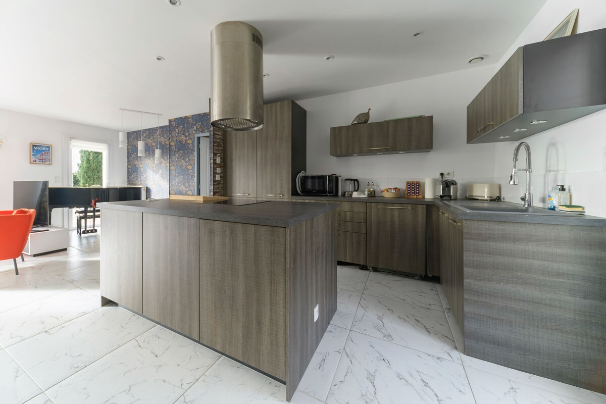 Smještaj na 4 nivoa sa stepenicama za život zajedno i nezavisno, novo i udobno. U blizini Vichyja (5 minuta vožnje). Prodavnice u blizini (2 min. pješice). Nije prikladno za osobe s invaliditetom ili invaliditetom. Na raspolaganju su vam dva parking mjesta i garaža. Imate i mali park okružen Allierom 5 minuta hoda od smještaja. Internet: Kutija s vlaknima (400 MB/s)