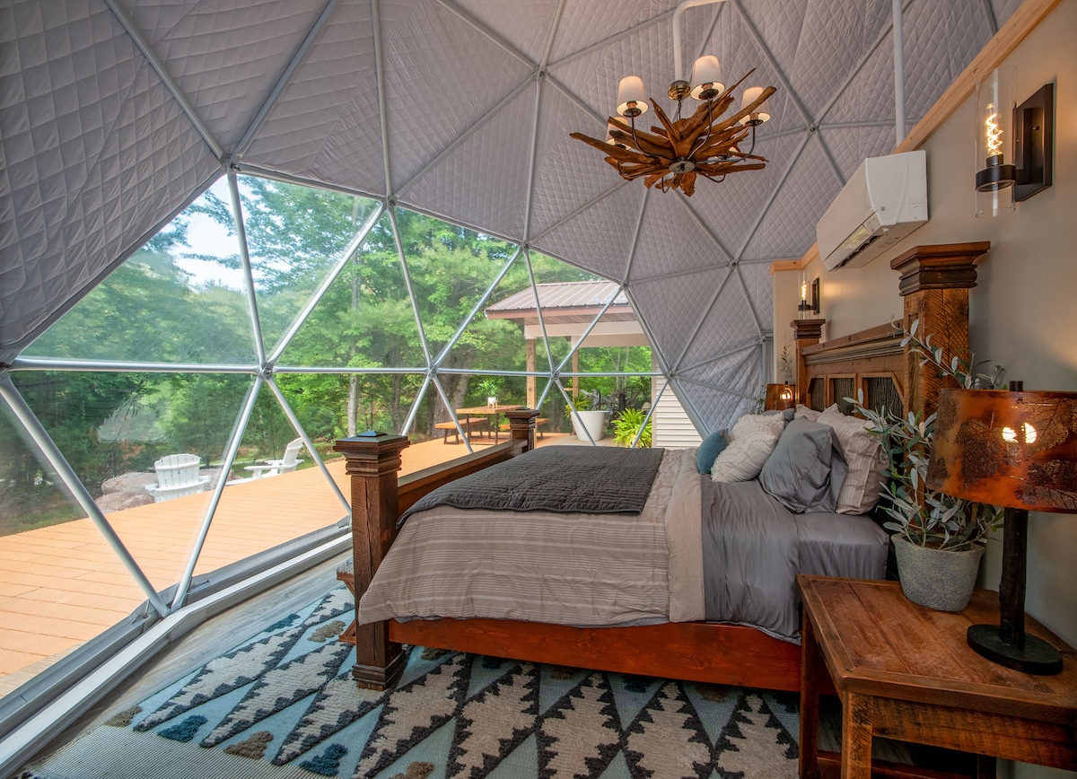 Enjoy an intimate experience with nature and all the amenities of a luxury resort yet only minutes away from Traverse City's finest restaurants, beaches, wineries, shopping, and golf. Only 3 miles from the Great Lakes Equestrian Show and 1.5 miles from Turtle Creek Casino. 780 sq. ft. of living space with majestic views. The dome is spacious and 16' tall. Enjoy a private bathroom complete with a bathtub/shower, vanity, & toilet, kitchen with a refrigerator, microwave, & hot plate. AC & Heat.