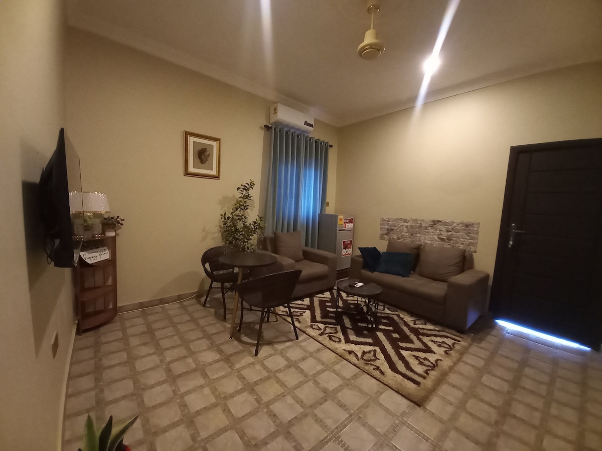 Opustite se i opustite u ovom mirnom i elegantnom prostoru. Uživajte u vrlo udobnom životu na samo 10 minuta od aerodroma u Akri. Odlična četvrt s trgovačkim centrima i odličnim restoranima s hranom na pješačkoj udaljenosti. Potpuno osiguran stan s brzim Wi-Fi mrežom , DSTV-om, napajanjem u stanju pripravnosti, potpuno opremljenom kuhinjom, mašinom za pranje veša na raspolaganju. Odličan objekat za ugošćavanje poslovnih ljudi ili malih porodica na odmoru.