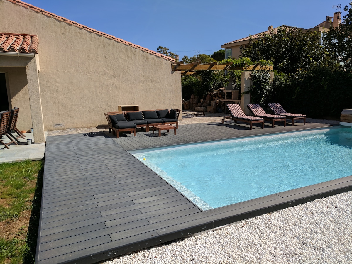 Villa pour 8 personnes, piscine et jardin privés.