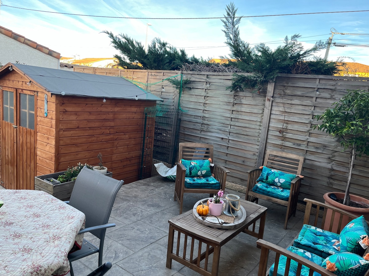 Bazen 4 x 8 m privatno i grijan na više od 30 ° C. 800 m od mora, u vrlo mirnom i zasjenjenom kvartu. Idealno za odmor i uživanje u prirodi. Nije zanemareno, niti na putu oko kuće. Nalazi se u blizini prodavnica, između Cap d 'Agde, Grau d' Agde i grada Agde.