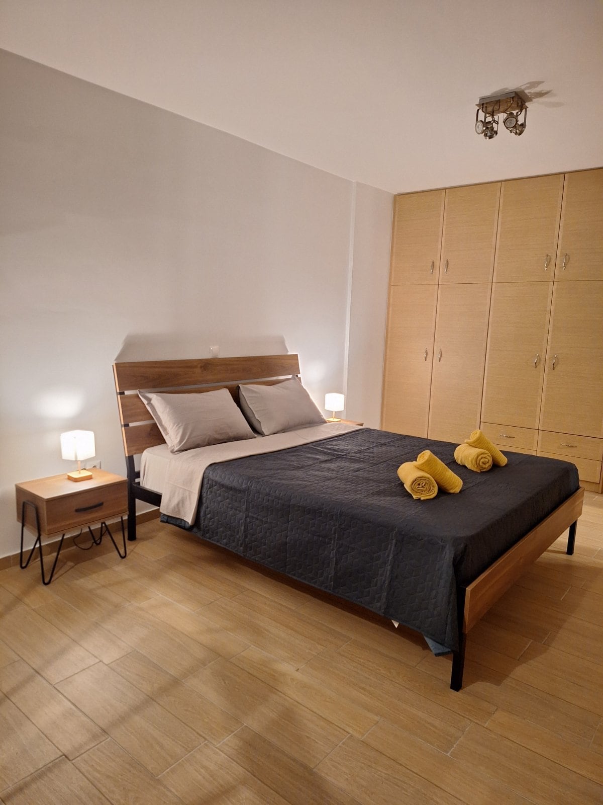 Kuća našeg oca, koji je nekada bio univerzitetski nastavnik, dostupna je tokom vremena kada ne posjećujemo Atinu. Sve je spremno za rad i čitanje, zbog statusa našeg oca, koji sada živi u starijoj kući. Jedna soba ima neke od naših stvari, tako da se ne iznajmljuje (ali se također može koristiti, ako vam ne smeta, jer ima jedan slobodni krevet). To je novoizgrađena kuća s velikim zelenim balkonom u mirnom susjedstvu. Ima veliki radni sto i besplatne biblioteke. Kuhinja je u potpunosti opremljena.