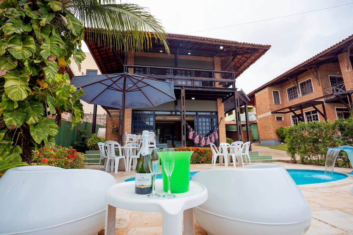 Odlično mjesto za odmor i opuštanje Udobna kuća, dupleks, s 200 m² izgrađene površine, 900 metara ukupne površine, dovoljno vanjskog prostora, bazena, terase s roštiljem, vrtovima, travnjakom i balkonima. Udaljen je manje od jednog bloka od plaže, centralne lokacije, u blizini hotela Donana, Jangadeiro, Pousada do Sol i tržnice „Mangue Seco”. Ima 4 spavaće sobe i 3 apartmana. Napomena: ima Wi-Fi! *Udaljeno je 50 minuta od aerodroma Pinto Martins i 60 minuta do Aldeote.