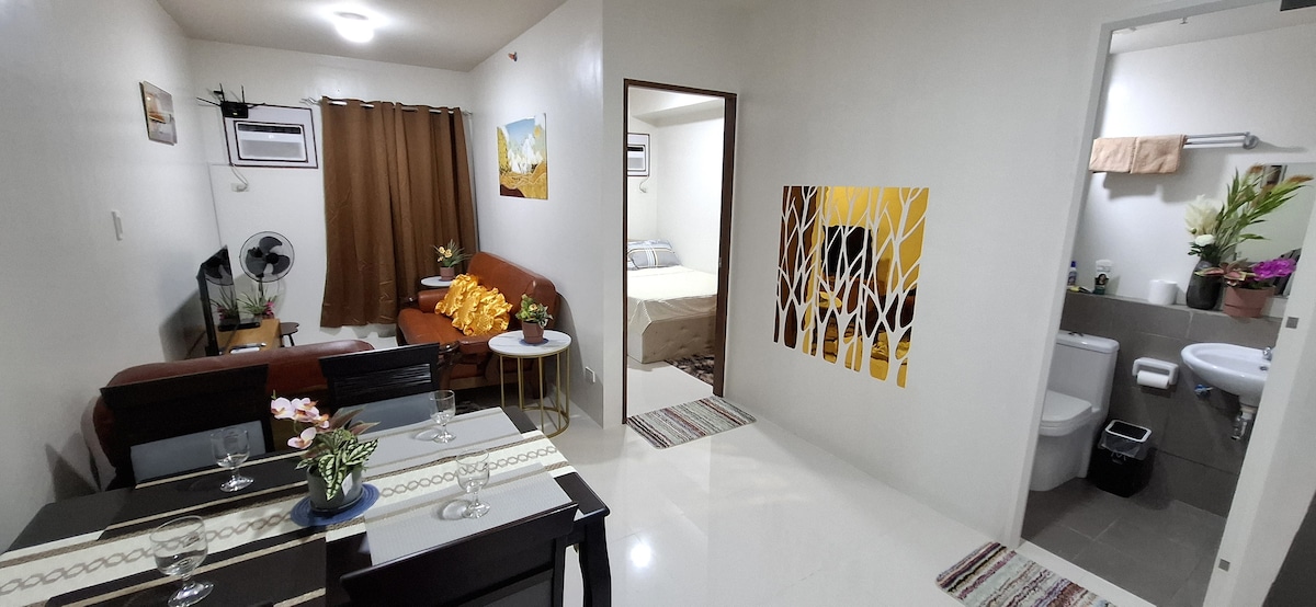 Bring the whole family to this great place with lots of room for fun. New, stylish and spacious. The apartment can accommodate up to 7 people comfortably. With the 2 people staying on the living room area. We are located near SM and Gaisano Mall. The bedrooms (2) are equipped with inverter air conditioning. The living room also has an inverter air conditioning. Complete with cooking amenities such as rice cooker, induction stove, griller, kettle and refrigerator. Enjoy!