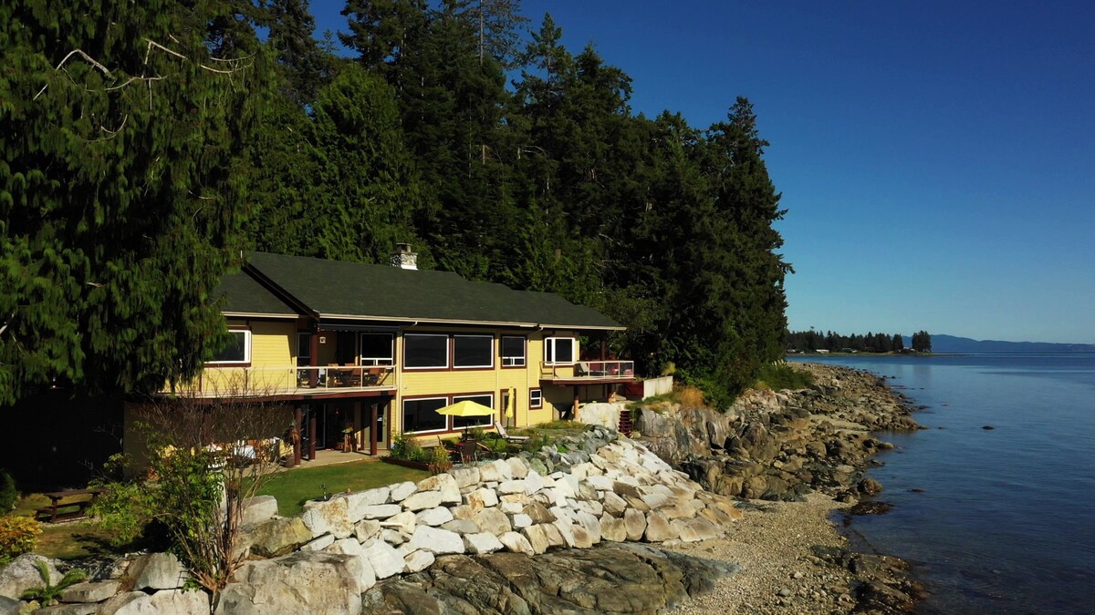 Ova prelijepa nova seoska kućica na obali mora može se pohvaliti zadivljujućim pogledom na kanal Malaspina. Ovo je savršeno mjesto za miran i opuštajući odmor. Uživajte u spektakularnim izlascima sunca s natkrivene terase i definitivno ponesite kameru jer je ovo igralište za morski život. Koraci do plaže i nekoliko minuta od svjetski poznatog planinarenja, vožnje kajakom, vožnje biciklom i ribolova.