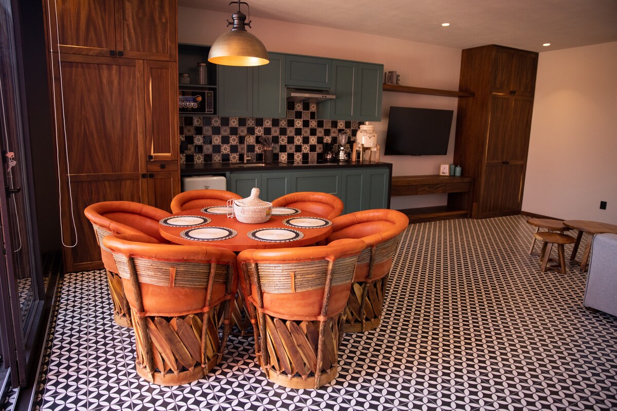 Smještena nekoliko minuta od arheološkog nalazišta Guachimontones, naša kuća ima sigurnu garažu, spavaću sobu, unutrašnje kupatilo i drugu izvana. To je vaše savršeno mjesto za uživanje Ukrašena modernim ukusom, naš prostrani, otvoreni dom ima sve što vam je potrebno za cijelu grupu. Opustite se na prekrasnoj stazi uz prekrasnu rijeku ili posjetite naše lokalne zanatske radnje i restorane u selu Teuchitlan.