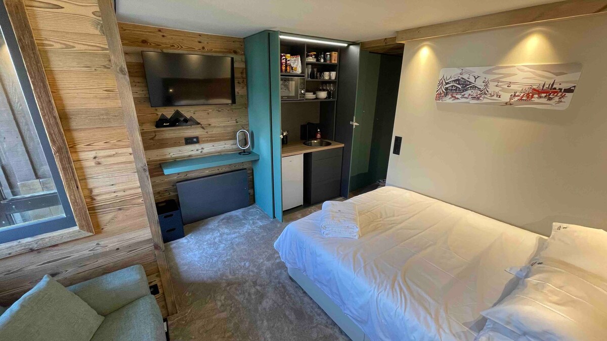 Izuzetan studio u podnožju padina – Courchevel 1550 Idealno smješten okrenut prema snijegu, ovaj renovirani studio nudi pristup uz skijašku stazu u popularnoj rezidenciji Lou Rei. Kratka šetnja do prodavnica, restorana i ski liftova, ima siguran natkriveni parking. Zimi vas gondola Grangettes vodi do Courchevela 1850 za manje od 5 minuta (8:00 - 23:00). Uživajte u profinjenom okruženju, kombinujući udobnost, eleganciju i praktičnost, s prekrasnim pogledom na planine. ☀️🏔️❄️