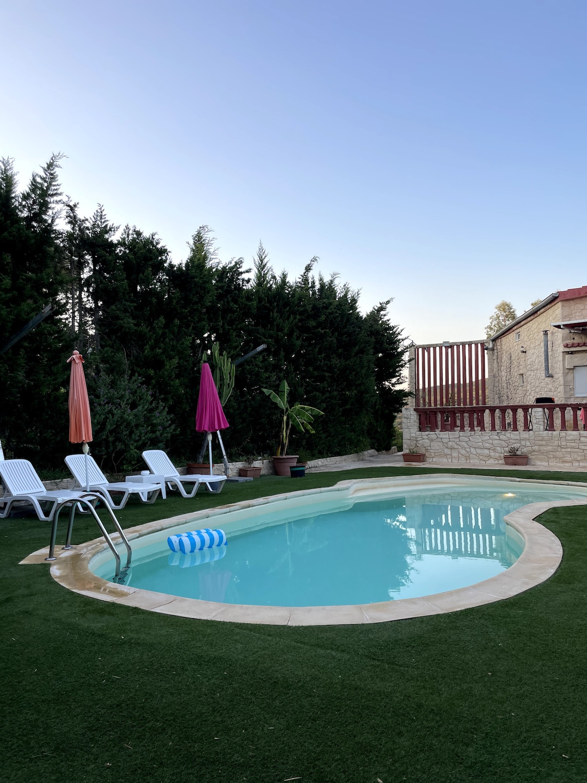 Tražite smještaj luksuznog smještaja? Naša vila u El Aliji je za vas! Uživat ćete u udobnosti naša četiri apartmana, od kojih svaki ima svoje privatno kupatilo. Svijetla dnevna soba s velikim prozorima od poda do plafona nudi vam panoramski pogled koji će vam oduzeti dah. Možete pripremiti ukusna jela u našoj opremljenoj kuhinji prije nego što se opustite pored našeg beskonačnog bazena. Navečer uključite roštilj i uživajte u zvijezdama dok uživate u krajoliku.