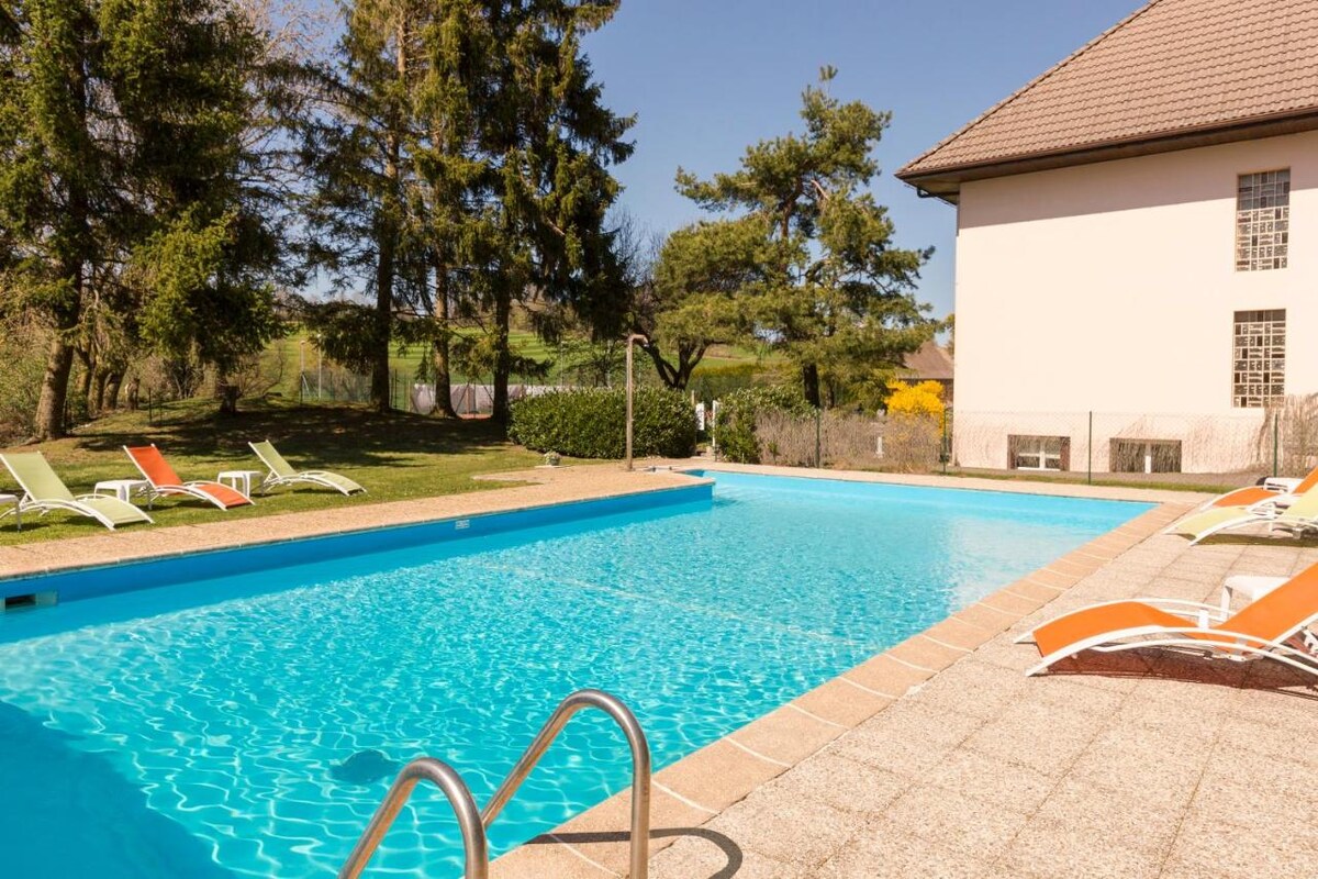 Smješteni na selu na 800 m nadmorske visine, smješteni u velikom vrtu u podnožju planine Salève, u savršenom ste okruženju za ugodan boravak u Haute Savoieu. Kada stignete u Hotel Rey, pronaći ćete dovoljno privatnog parkinga na otvorenom. Otpratit ćemo vas do sobe kako bismo se uvjerili da je sve u skladu s vašim očekivanjima kako biste mogli uživati u boravku od prve minute.