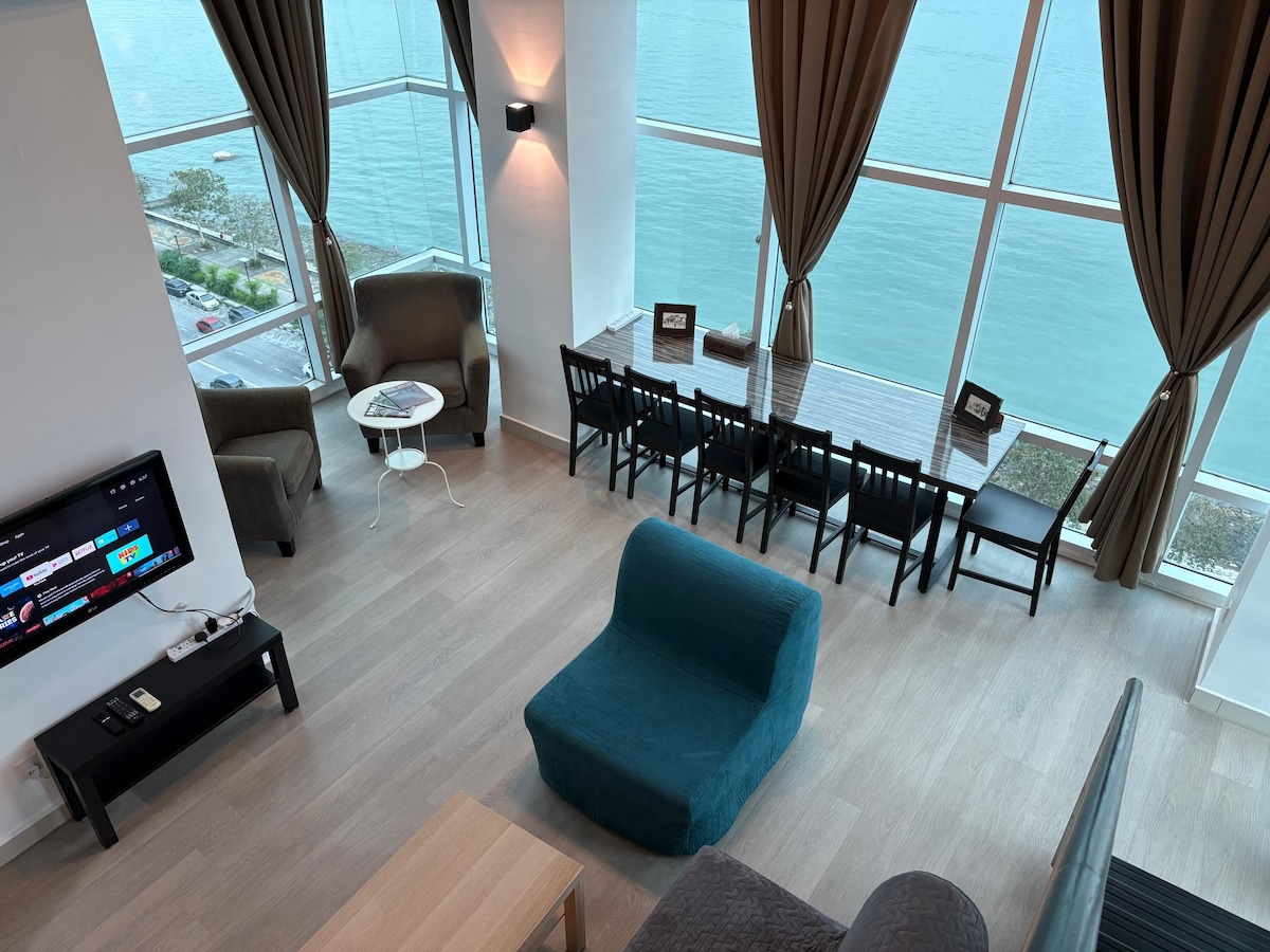 Dupleks apartman od 93 m2 s 2 spavaće sobe i pogledom na more i izlazak sunca u Georgetown-Maritime Suites ★ Odlična lokacija – 10 minuta vožnje do područja baštine George Towna ★ Sušilo za kosu najvišeg nivoa ★ 2 besplatna parkinga u zatvorenom prostoru s 24-satnim osiguranjem ★ Brzi Wi-Fi ★ Dostupan je punjač za električna vozila (primjenjuju se naknade) ★ Besplatan pristup bazenu i teretani ★ Hrana i piće, namirnice i vešeraj na pješačkoj udaljenosti, kao i šetalište uz more za trčanje i opuštanje ★ Idealno za medicinska putovanja – 10 minuta vožnje automobilom do bolnice Loh Guan Lye, bolnice Gleneagles i bolnice Island