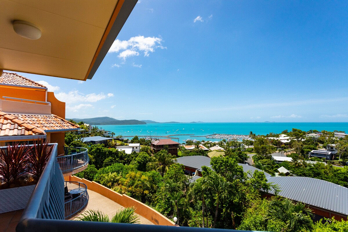 ★Fully self contained 2bedroom 2 bathrooms ★Stylish modern decor throughout ❤︎ ★ 500m stroll to Main Street Airlie ★ 180 degree Coral Sea and Whitsunday Island views ★ 20m infinity edge pool + 15m lap pool and spa ★BBQ area ★Free wifi "Wow wow wow. The apartment was absolutely fantastic. Very well maintained and spotless accommodation, with some lovely touches organised for our stay" STRICTLY no schoolies bookings