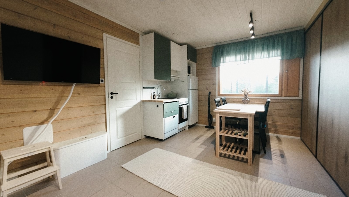 Dobro došli na opuštajući odmor na sjeveru! Naš stan ima jednostavan pristup otvorenom prostoru i ljeti i zimi, a postoji bezbroj stvari koje možete raditi! Područje je mirno, a terasa je sunčana tokom dana, sauna se zagrijava u večernjim satima. Za dodatnu udobnost, toplotna pumpa sa izvorom zraka koja dodaje i hladnoću i toplinu po potrebi. Centar grada je nedaleko preko jezera zimi, 2,5 km duž ceste, a staze su udaljene 300 metara. U blizini se nalazi i igralište, a skibus staje 200 metara dalje.