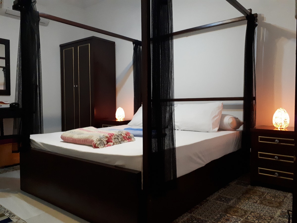 Boravite u faraonskoj kući, smještenoj direktno ispred nove kapije piramida u Gizi u živopisnoj četvrti Vrt piramida (Hadayek El Ahram). Gostinjska kuća ima jedinstvena ručno oslikana drevna egipatska umjetnička djela i nudi prekrasan pogled na piramide s balkona i dvije sobe. Uživajte u jutarnjoj kafi ili obrocima dok gledate izlazak i zalazak sunca iznad piramida. Savršen boravak za putnike koji traže udobnost, kulturu i nezaboravan pogled.