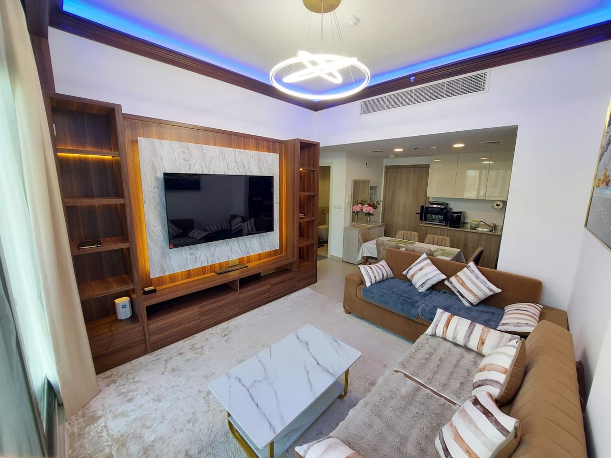 Zakoračite u naš zadivljujući luksuzni stan s 1 spavaćom sobom, pažljivo dizajniran da ponudi neusporedivo iskustvo parovima ili putnicima koji putuju sami. Savršeno za 2 odrasle osobe ili 2 odrasle osobe i bebu. Od trenutka kada uđete, dočekat će vas elegantan, moderan životni prostor ukrašen vrhunskim završnim obradama i pažljivo osmišljenim detaljima. Opustite se u plišanom prostoru za sjedenje, pripremite gurmanski obrok u potpuno opremljenoj kuhinji ili se opustite na privatnom balkonu uz šolju kafe dok uživate u živahnoj energiji Dubaija.