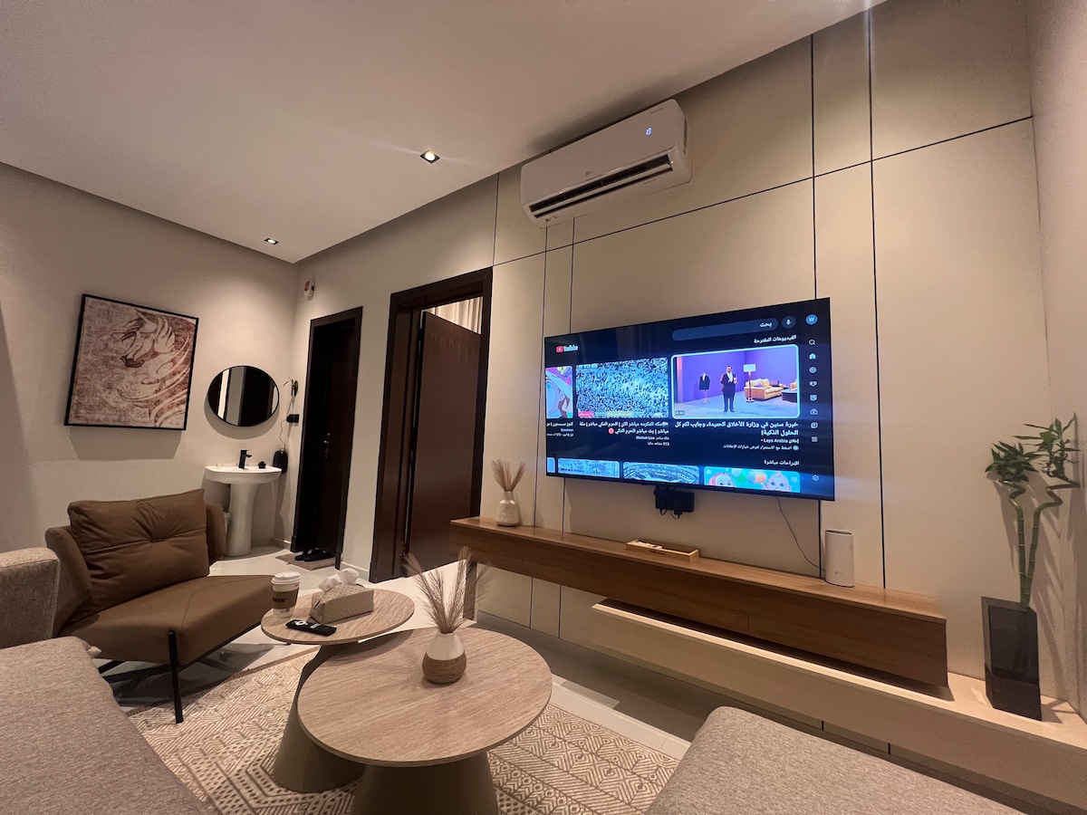 Stan ima moderan dizajn koji uključuje sobu i salon, sa zasebnom kuhinjom koja garantuje privatnost i udobnost. Stan ima odličan pogled na toranj Al-Kharj, što mjestu daje poseban šarm. Prostor je velik, što ga čini idealnim za ugodan život