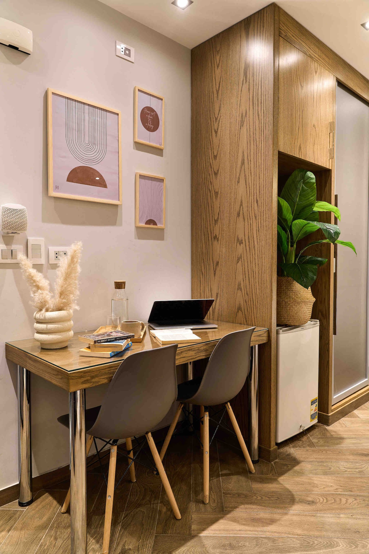 استوديو فاخر بتصميم مودرن وأجواء هادئة، idealno za parove i samostalne putnike. Uživajte u luksuznom studiju sa samostojećom kadom, modernom rasvjetom i toplim drvenim završnim obradama za opuštajući boravak. 📍 Odlična lokacija u blizini tržnog centra City Stars – Nasr City ✔️ Smart TV ✔️ Brza Wi-Fi mreža ✔️ Klima uređaj ✔️ Potpuno opremljena čajna kuhinja ✔️ Radni prostor za rad na daljinu ✔️ Prizemlje – jednostavnom pristupu Savršeno za romantične boravke, poslovna putovanja ili kratke gradske odmore. Čisto, moderno i privatno.