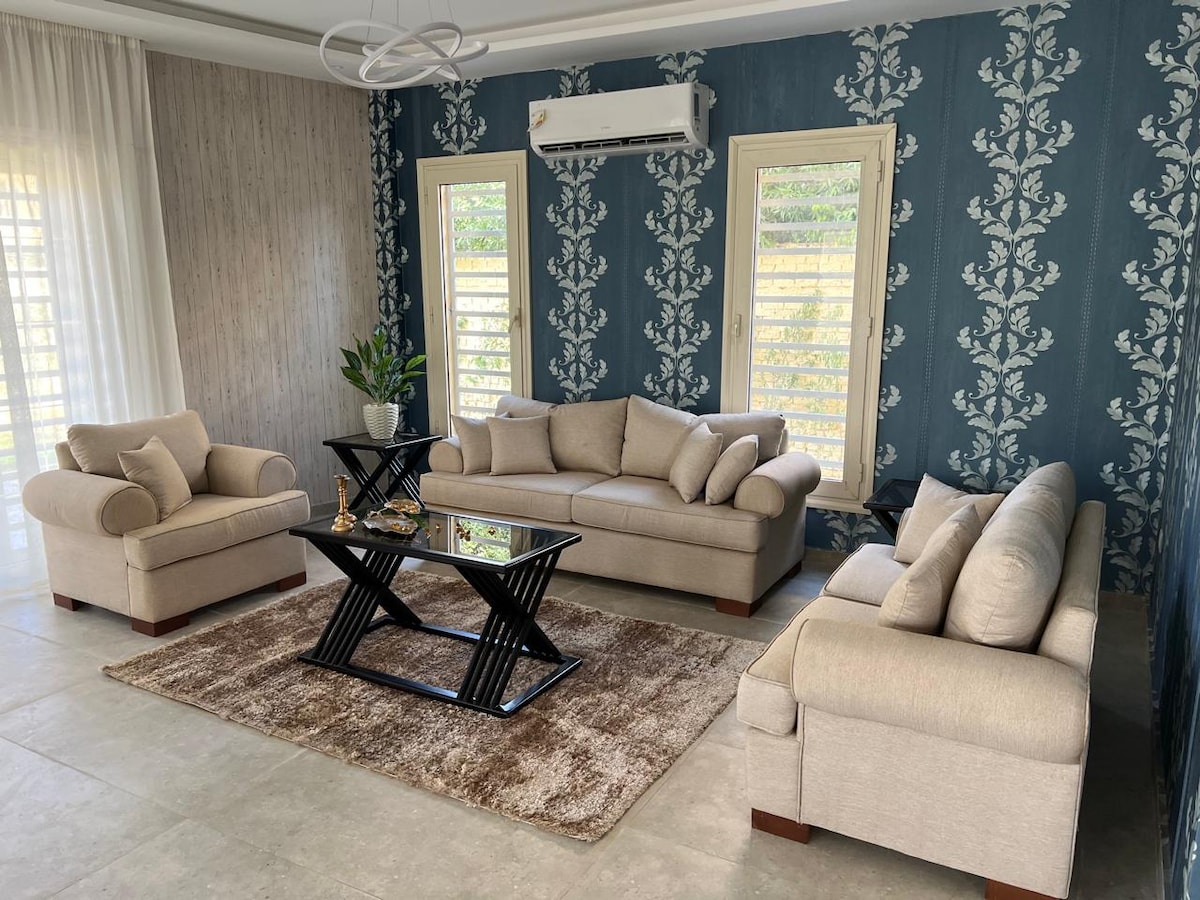 Moderan trosoban stan s 2 kupatila u El Obouru (200 m²). Potpuno opremljen novim namještajem, klima uređajem i brzim Wi-Fi mrežom. Samo 20 minuta od 5. naselja. Prostrani dnevni boravak, savršen za porodice ili grupe koje traže udobnost i praktičnost.
