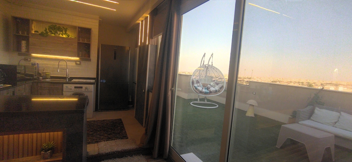 Pogledajte recenzije Uživajte u cijeloj porodici u ovom elegantnom i udobnom smještaju. Vaš stan na krovu se nalazi na petom spratu, a na četvrtom spratu kompleksa Acacia ispred kapije 5 i 6 Rehabilitacija 5 minuta hoda do mjesta za piknik, banaka, prodavnica i trgovačkih centara od Međunarodnog aerodroma Kairo Stan 2 spavaće sobe 3 krevetarrr i užurbani život s modernom kuhinjom Otvorena američka kuhinja, američka kuhinja, 2 terase, plaža s 2 terase i 2 plaže s terasom i potpuno opremljena kuhinja i kuhinja opremljena potpuno opremljenim modernim namještajem Wi-Fi Smart TV 55 ", te Netflix usluga objekta s nadzornim kamerama i sigurnošću i pratnjom
