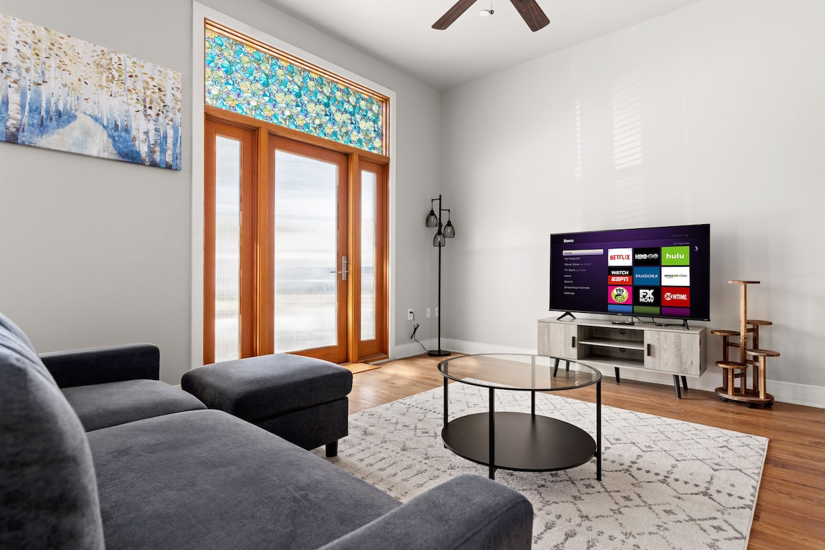 You can stop your search now. You just found the perfect place to book for your trip to San Antonio. ➹ Clean. Robust Amenities. Modern Finishes. Quick Host Responses. ➹ You're going to be located at the CENTER of everything in Downtown San Antonio. ➹ Get a good night's sleep with our memory foam beds. ➹ Spend your daytime working from home at our private home office. Cook a meal for your group in our beautiful, timeless kitchen. Then spend your evenings relaxing with our 65" Smart TV.