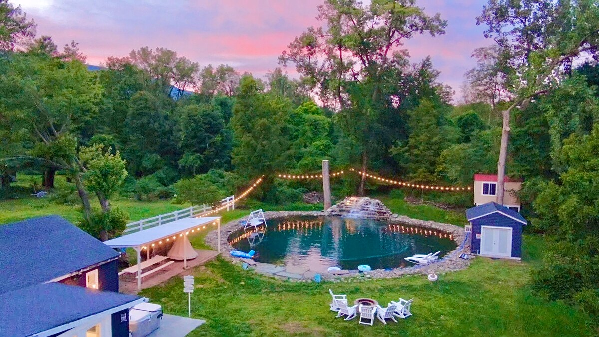Isplanirajte sva godišnja doba za bijeg u ovu prekrasnu novu modernu planinsku kuću iz sredine stoljeća s pogledom na Windham Mtn, udaljenu manje od 5 minuta vožnje. Smješten između državnog zemljišta i aktivnog potoka, uživajte u masažnoj kadi, kaminu, igraonici, otvorenom tlocrtu i drugim luksuznim sadržajima. Samo 2,5 sata od New Yorka i nekoliko minuta do skijanja (<5 minuta do Windham Mtn, 15 minuta do Hunter Mtn, 40 minuta do Belleayre Mtn), planinarenje, biciklizam, plivanje, golf, ribolov, vinogradi i restorani!