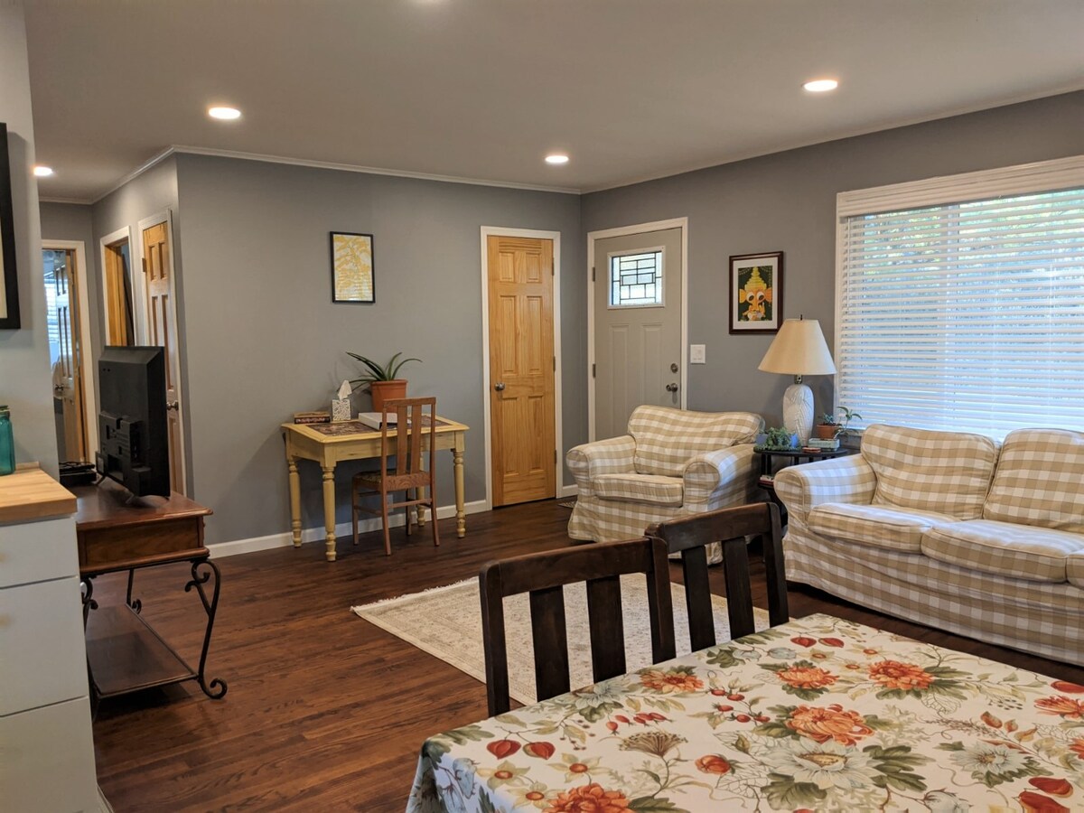 Uživajte u ljepotama okruga Atina samo nekoliko minuta vožnje od Univerziteta Ohio jednom okružnom cestom. Water's Edge, izuzetno čist stan na 2. spratu, idealan za 1 osobu ili par, gleda na jezerce od 3 hektara na 5 hektara u sigurnom ruralnom dijelu. Sa svim sadržajima koji su vam potrebni, uključujući brzi Wi-Fi, savršen je smještaj kada posjećujete OU, prisustvujete muzičkim festivalima, planinarite brdima ili tražite inspirativno utočište za pisce/umjetnike. Nema plivanja/plovidbe/plaže. Maksimalna popunjenost: 2