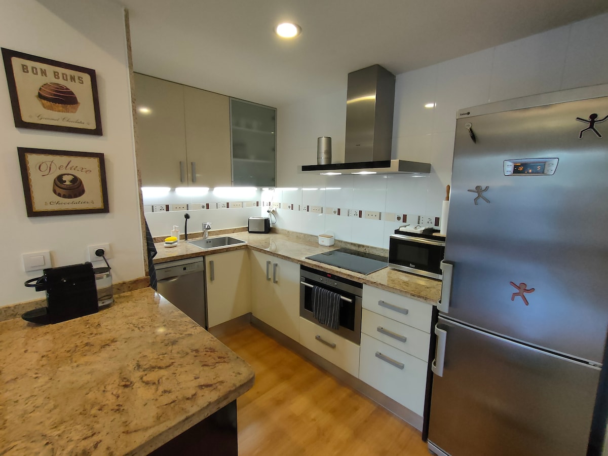 Dupleks stan, 16. visina sa fantastičnim panoramskim pogledom i visokim karakteristikama koje su bolje od hotela. Potpuno zvučno izoliran, idealan za odmor bez buke. Savršeno za parove kao jedinstven i ekskluzivan prostor Pored tržnog centra u ARENI, sa prodavnicama i restoranima. Besplatan privatni parking povezan sa potkrovljem u liftu. Metro y supermercados a 2 min walkando.Playa a 5 min by car. Ekskluzivno korištenje parova : djeca i posjetioci nisu dozvoljeni. Wi-Fi +TV65'' i kompletna kuhinja sa svime.