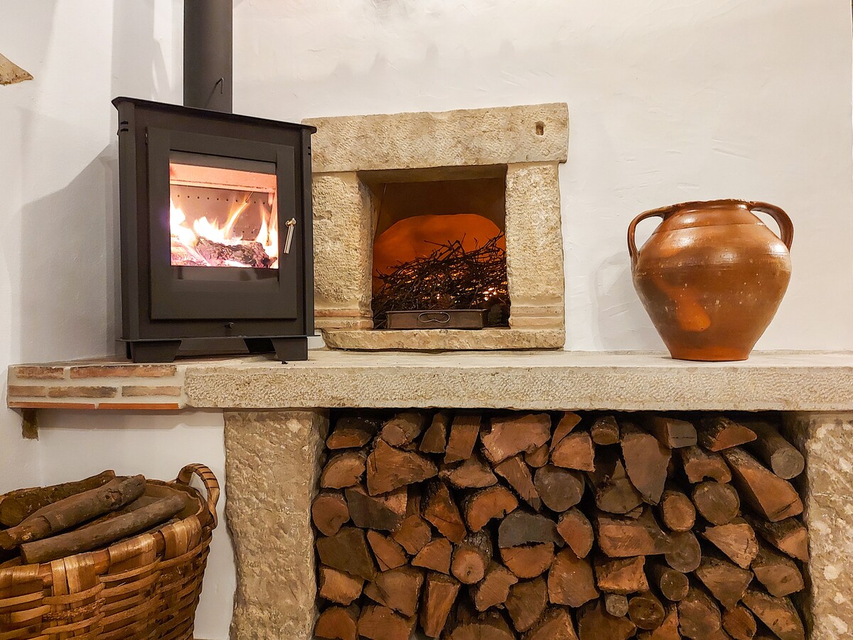 Udobna privatna seoska kućica s kaminom i vanjskom kadom