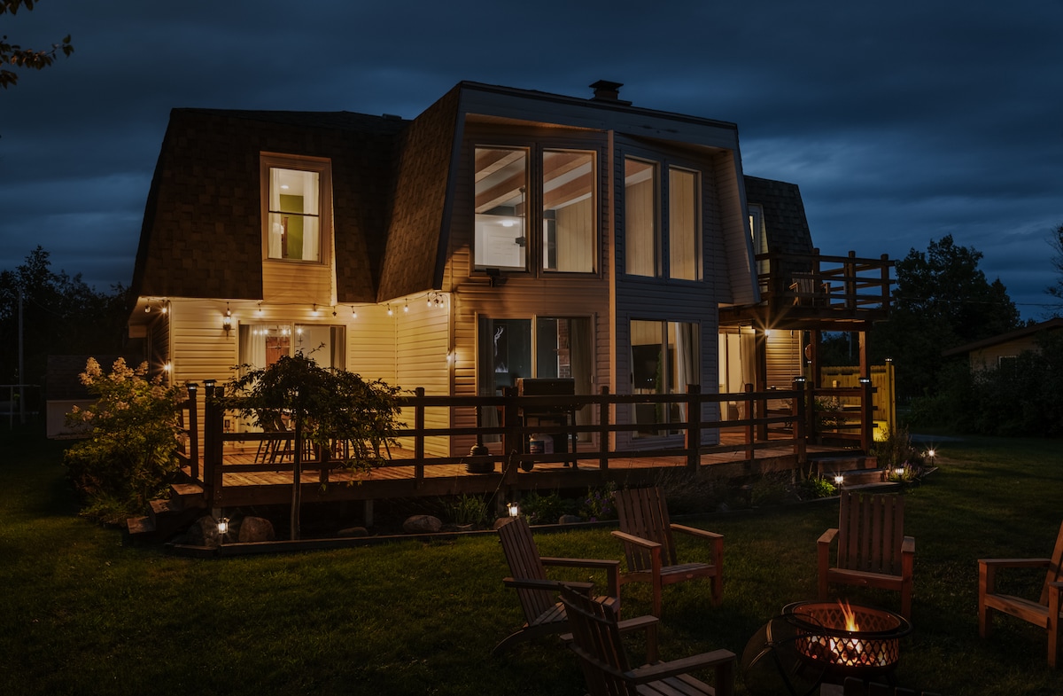 Naš Airbnb s temom Lakeshore Lodge obećava mješavinu rustikalne privlačnosti i savremenog luksuza. Ovo spokojno utočište uz jezero može se pohvaliti s 3 udobne spavaće sobe, direktnim pristupom mirnim vodama Thunder Baya i mnoštvom šetnji na otvorenom. Bilo da veslate na našim besplatnim kajacima ili se opuštate u umirujućem zagrljaju masažne kade, svaki trenutak je korak bliže opuštanju. Zaronite u skrivene dragulje Alpene ili jednostavno uživajte u slikovitom pogledu s našeg objekta.