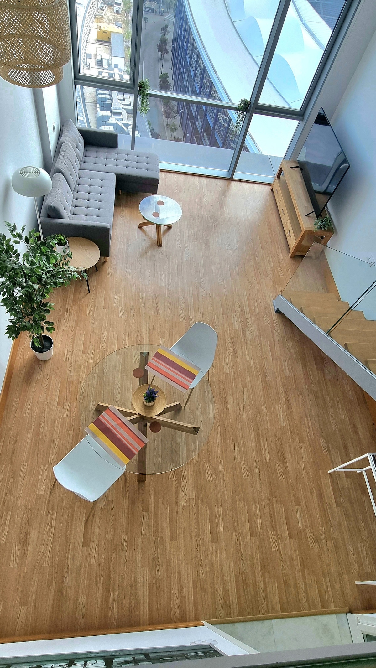 Dupleks stan, 16. visina sa fantastičnim panoramskim pogledom i visokim karakteristikama koje su bolje od hotela. Potpuno zvučno izoliran, idealan za odmor bez buke. Savršeno za parove kao jedinstven i ekskluzivan prostor Pored tržnog centra u ARENI, sa prodavnicama i restoranima. Besplatan privatni parking povezan sa potkrovljem u liftu. Metro y supermercados a 2 min walkando.Playa a 5 min by car. Ekskluzivno korištenje parova : djeca i posjetioci nisu dozvoljeni. Wi-Fi +TV65'' i kompletna kuhinja sa svime.