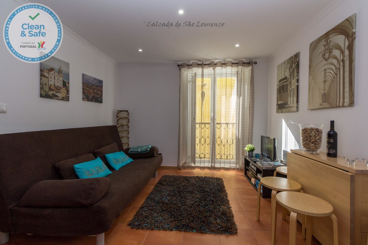 Stan se nalazi u četvrti St. Cristóvão i St. Lourenço, u historijskom centru Lisabona. Stan se nalazi na 1. spratu stoljeća XVIII koji bi mogao stajati nakon zemljotresa u Lisabonu 1755. godine i nedavno je renoviran (2011.). Ovi radovi su implementirani pod kišobranom arhitektonskog studija "a. - A Point" Stan ima dobru svjetlinu i udobnost. Ima internet dostupan na bežičnoj i kablovskoj televiziji, dok možete popiti Nespresso kafu ili popiti bocu finog portugalskog crnog vina. U sobi ima odličan krevet i kauč u dnevnoj sobi s dobrim krevetom. Ovo područje je vrlo blizu dvorca S. Jorge (10 minuta hoda) i na istoj udaljenosti od rijeke Tejo i Bairro Alta (noćni život). To je vrlo centralno kao i u srcu grada. Vrlo blizu trga Rossio i Trga Figueira. Udaljen je 1 minut od stanice metroa u Rossiu i parkinga. Ima mnogo prevoznih sredstava dostupnih pored (metro, autobus, tramvaj i taksi), a također je i raznolika trgovina, uključujući mini market. To je vrlo mirno područje, a zgrada je vrlo tipična za stepenice pješačkog pristupa dvorcu S. Jorge.