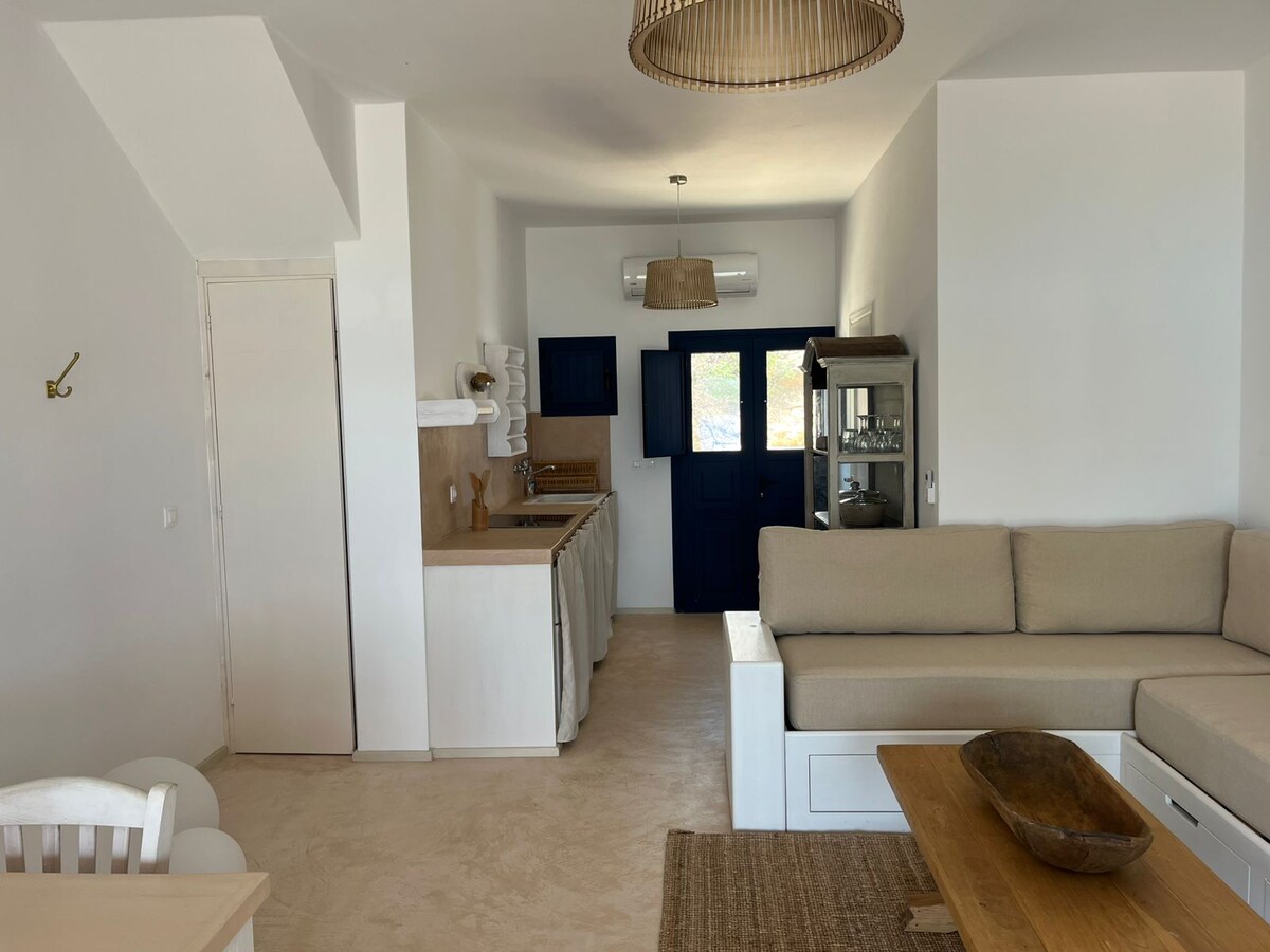 Kombinacija modernog dekora u kombinaciji s boho elementima je ono što ovu tradicionalnu kuću na Lerosu čini tako jedinstvenom. U mirnom području Lerosa, Kritoni, ova rezidencija obećava nezaboravan boravak odmah pored mora. Prepustite se predivnom pogledu u ovom inovativnom apartmanu poznatog brenda i uživajte u najčarobnijim zalascima sunca na njegovom slikovitom balkonu.