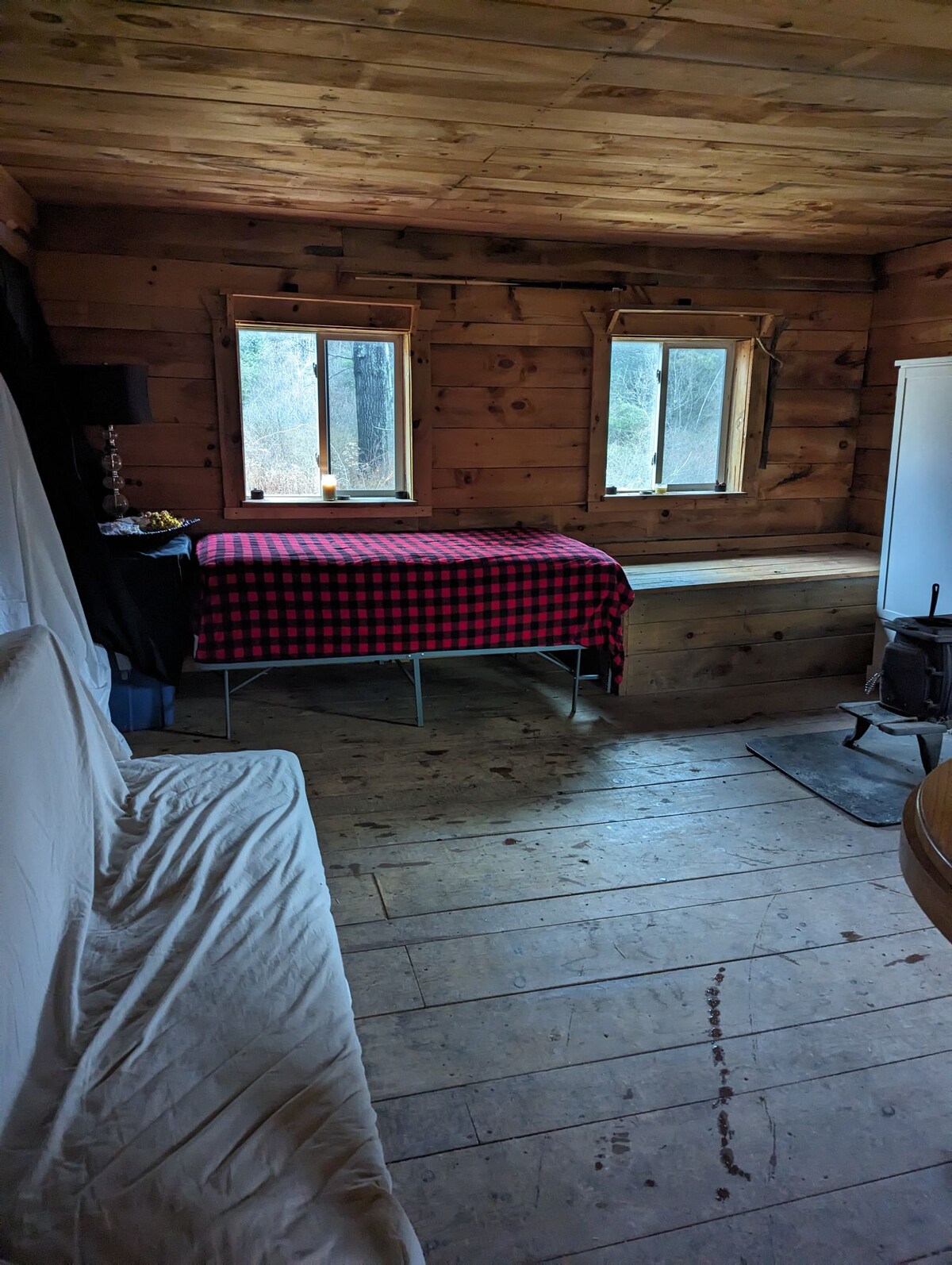 Polupaljni, izvan mreže, novoizgrađena,udobna brvnara veličine 14' x 24' s trijemom veličine 8' x 14'. Solarna energija s tekućom toplom vodom i toplinom. Nalazi se na 90 hektara rekreacijskog i lovišta. Struja potiče iz solarnog sistema na licu mjesta, s daljinskim generatorom za pokretanje kako biste osigurali da nikada ne izgubite struju. Ova lokacija je za one koji traže doživljaj koji se razlikuje od hotela/motela. Međutim, i dalje pruža sve osnovne sadržaje Lov je dostupan.