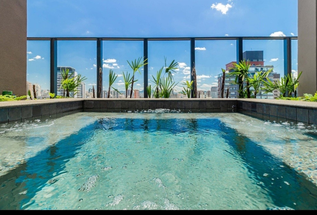 Novi studio s panoramskim pogledom — 24. sprat s beskonačnim bazenom i stilom! Uživajte u São Paulu udobno i sa stilom u našem studiju, uređenom s ljubavlju kako bi vam poželio dobrodošlicu. Nalazi se na 24. spratu sa *180° staklenim pogledom na autoput Pinheiros*. Moderno utočište, idealno za one koji traže praktičnost, udobnost i jedinstveno iskustvo u gradu.