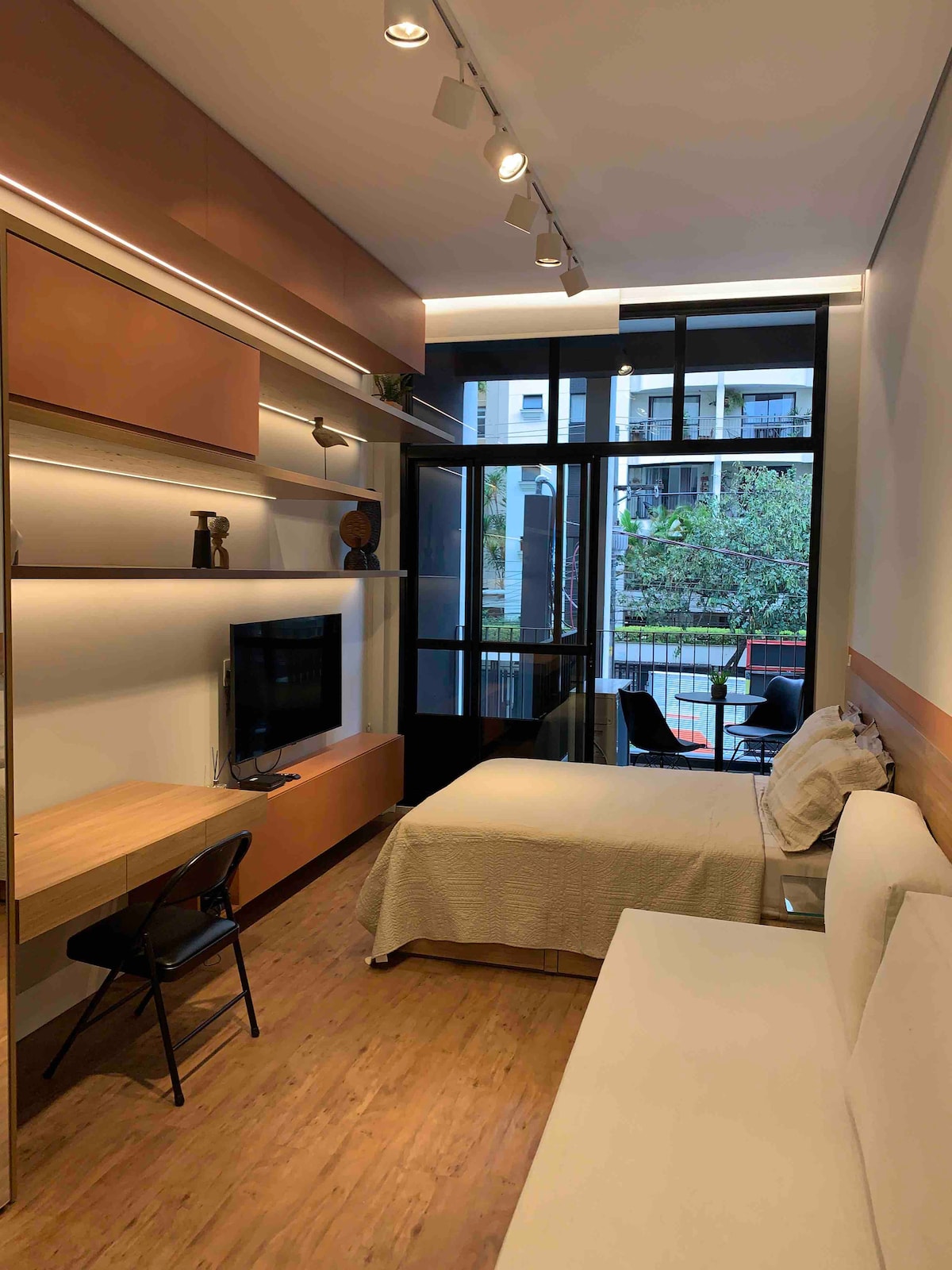 Prekrasan savremeni studio na odličnoj lokaciji u jastrebovima. Pored parka Allianz 4 minute do Pé, PUC, Shopping Bourbon ,West Plaza, Spacço das Américas. Stan ima WI-FI, pametni TV, opremljenu potpuno opremljenu kuhinju, aparat za espresso i italijanski aparat za kafu, obezbjeđujem kapsule za kafu i 1 bocu vode u frižideru, mikrovalnu pećnicu, minibar,blender, aparat za sendviče, fen za kosu, trosseau i klima uređaj. Detalji: 24 m², 1 spavaća soba, 1 kupatilo, 1 parking mjesto