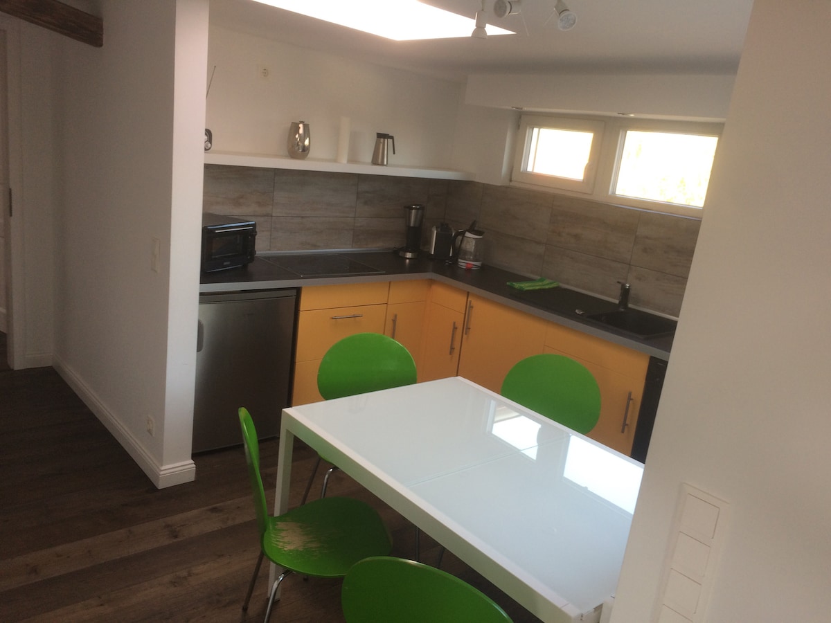 U zatvorenom prostoru naše kuće. Ugodna atmosfera kroz glinenu gips+drvo; najljepše okruženje, vrlo mirno. i blizu: Ratzeburg (automobil 5min), Lübeck (automobil 20min). Jedno kupatilo; samo brza indukcijska ploča za kuhanje, jednostavno kuhanje, frižider, Wi-Fi. Bračni krevet (160x200). Osim toga, sto+stolice u vrtu. Besplatni bicikli. Autobus na grani B207 Buchholz. Vrlo brzo na jezeru, putovanje brodom. Zabranjeno je pušenje životinja. Ograničena telefonija u kući zbog glinene žbuke u zavisnosti od pružatelja usluga.