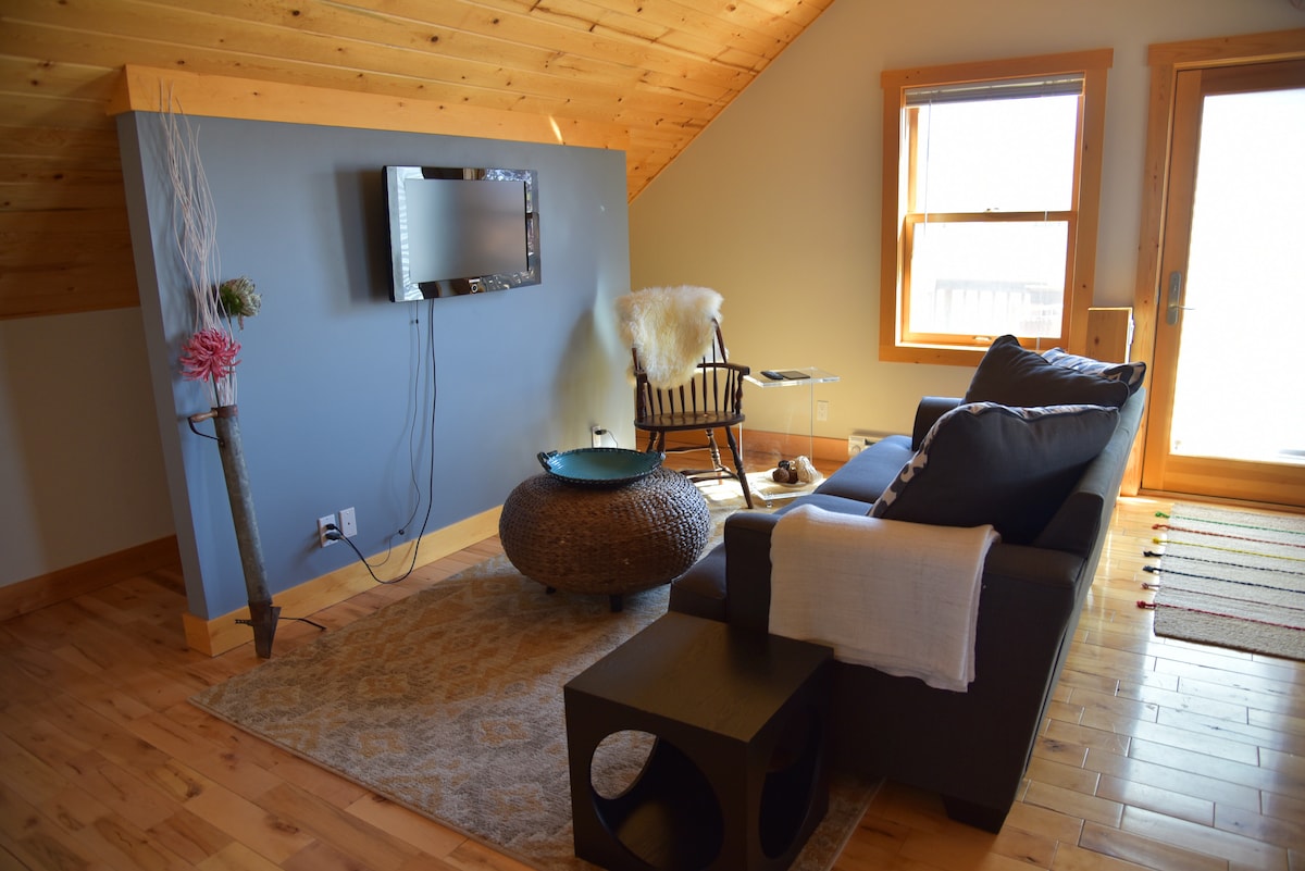 Kick back and relax in this calm, stylish space. Teton View Cabin is our modern retreat in the heart of Teton Valley. Situated on 8 private acres with unobstructed views of the Teton Range. Choose your own adventure from our home base. Whether your preference is adventure sports at Targhee, dining out in Driggs, or curling up in the window seat or by the fire with a good book, you can do it here. Minutes from downtown Driggs for great restaurants/shopping yet secluded enough to escape it all.