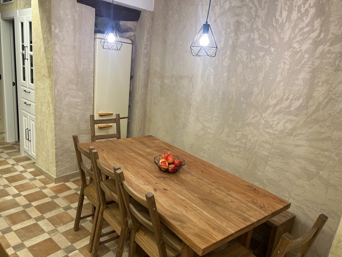 Kamena kuća je izgrađena održivo od kamena i drveta tokom drevnog „doba”. Ima tri sobe, od kojih su dvije povezane malim stepeništem. Uživajte u predivnom pogledu na planine ispod svježine bujne vinove loze i malog bazena sa svježom vodom (nije dostupno zimi). Kuća je ukrašena slikama, starinskim namještajem i posebnim predmetima. I sve to u Matetu, malom selu unutar Parka prirode Serra d'Espadà u Castellónu.