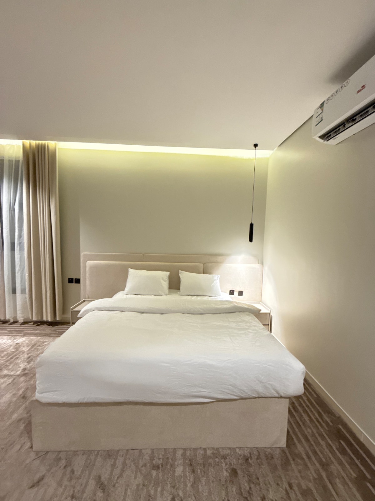 شقة فندقية راقية بتصميم عصري وأثاث فاخر، تجمع بين الراحة والفخامة لتمنح الضيوف تجربة إقامة مميزة. تتكوّن من غرفة نوم وصالة وبلكونة ومطبخ متكامل، وتوفر أجواء دافئة وخدمات تضاهي أفضل الشقق الفندقية.