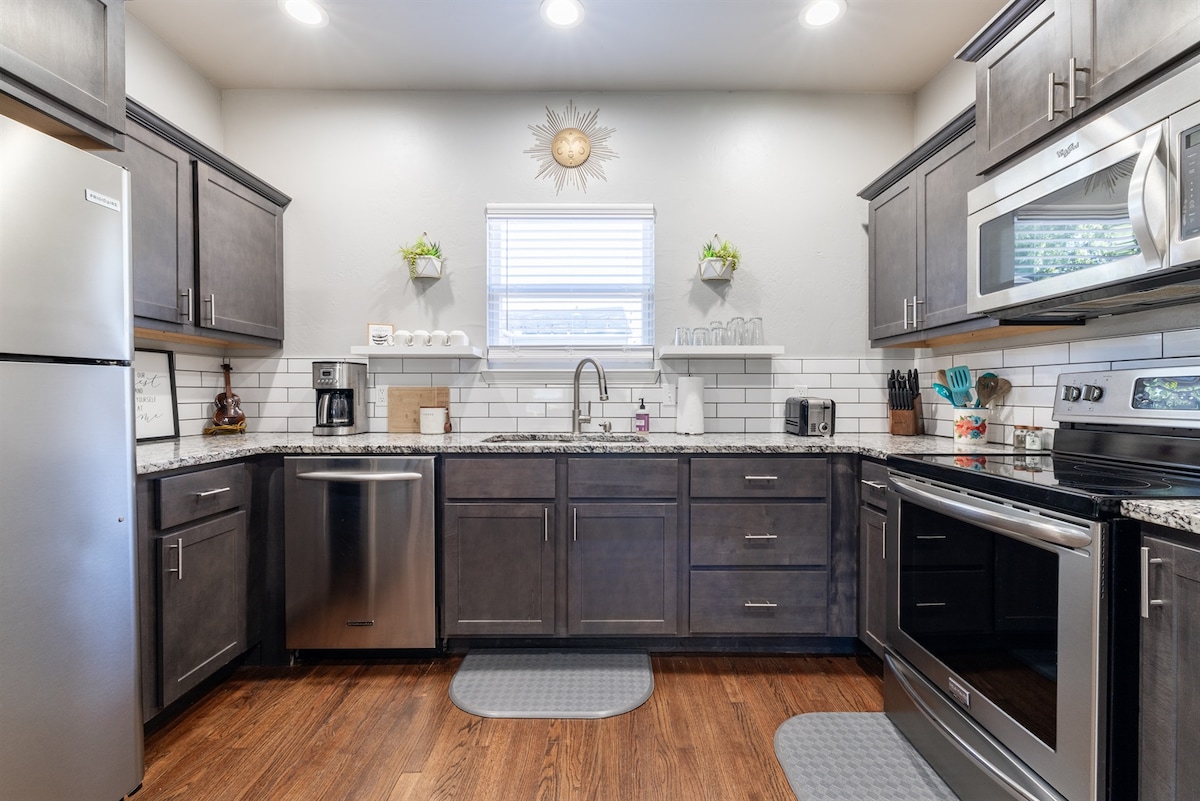 Gosti će uživati boraveći u cijelom stanu iznad kuće koji ima mnogo sadržaja kako bi njihov boravak bio nezaboravan. Ovaj smještaj ima privatni ulaz, kafu, grickalice, pića, brzi Wi-Fi i besplatan parking! 15 minuta do OU i Riverwind Casina! Ovaj smještaj također ima privatni, natkriveni paviljon koji je odličan za druženje i kuhanje na našem roštilju na otvorenom. Vanjski prostor se može dijeliti. Naša predivna ljuljačka koja se nalazi u stražnjem dvorištu savršena je za fotografisanje ili uživanje u vremenu.