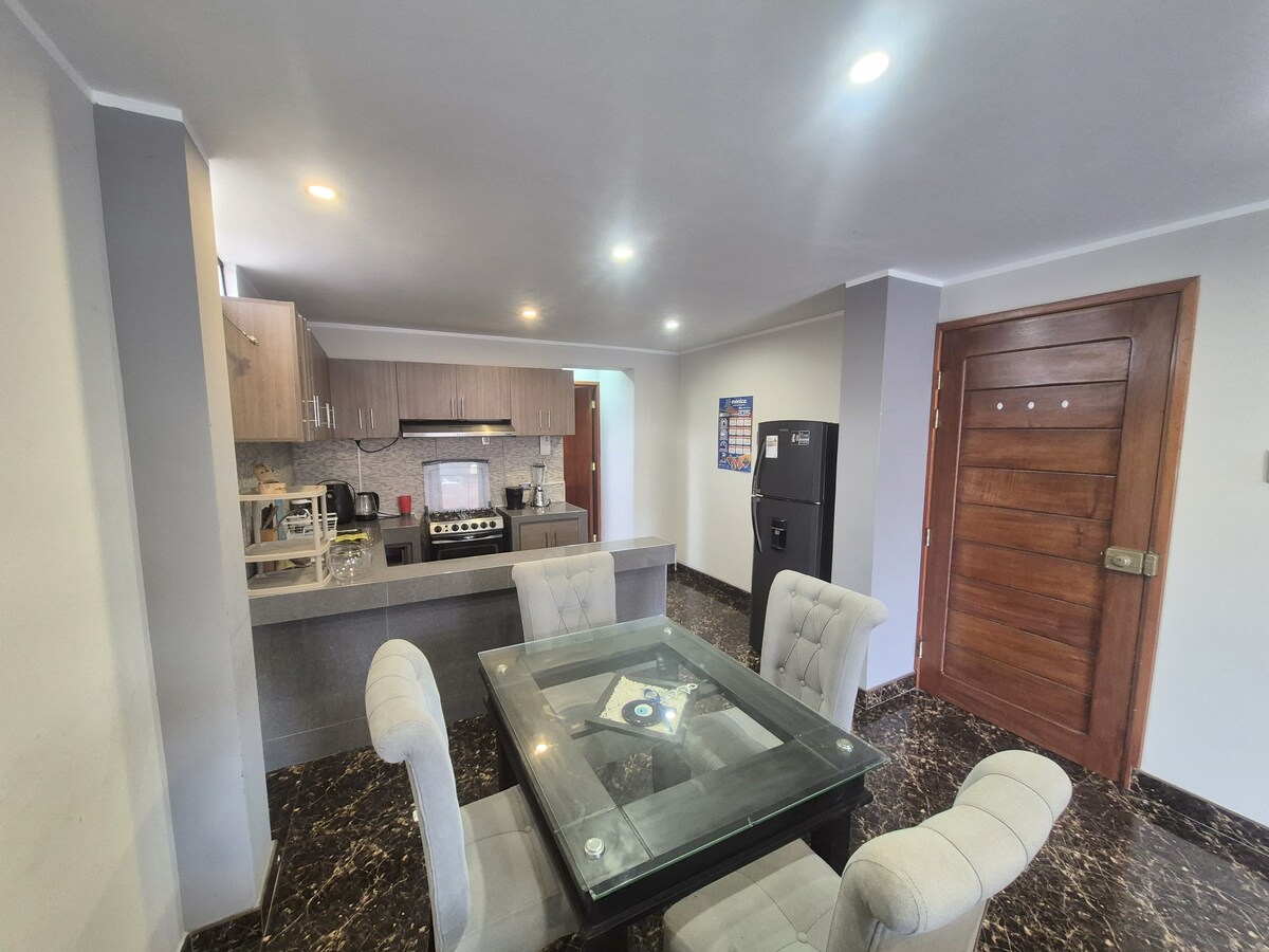 Uživajte u toplom gradu Huánucu, ovom udobnom i modernom stanu, dizajniranom za vašu udobnost. Njegova centralna lokacija vam pruža jednostavan pristup glavnim atrakcijama, restoranima i prodavnicama. Idealno za udoban porodični boravak Dobro došli u vrlo plemeniti i odani grad Caballeros de León de Huánuco!
