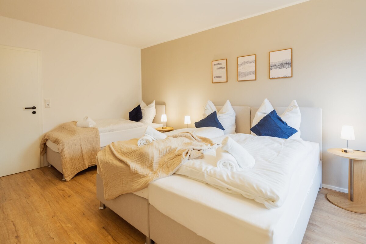 Smještaj za odmor je na spratu do stambene zgrade. Pogodan je za 4 osobe ili 2 odrasle osobe i 3 djece. Tu je otvorena kuhinja-dnevni boravak, prostrana dvokrevetna soba, dječja soba s krevetom na sprat i tuš kabina. Uključeni su posteljina, peškiri i Wi-Fi. Najbliža pekara je udaljena oko 1,3 km, a najbliži supermarket oko 2 km. Do AZL Luhmühlena možete doći za 5 minuta pješice, a do područja događaja Westergellerser Heide za 15 minuta (2 km).